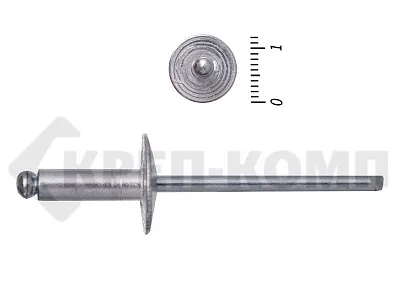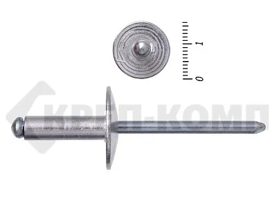 Заклепки вытяжные стандартные комбинированные с увеличенным буртиком (алюминий - сталь) используются при работе с материалами, значительно уступающим в прочности самой заклепке, увеличенный бортик значительно увеличивает площадь нагрузки, обеспечивая меньшее давление. Алюминий, из которого изготовлена рубашка данной заклепки, обладает легкостью и коррозиестойкостью. Вытяжная часть, в свою очередь выполнена из стали, основными преимуществами которой можно считать твердость и прочность.